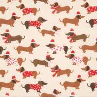 Dachshunds in Santa Hats - Cream - Polycotton 1 Metre