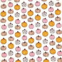 Decorated Mini Pumpkins on White - Polycotton Fabric 1 Metre
