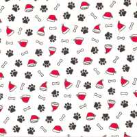 Christmas Hat, Paw and Bone - White Polycotton 1 Metre