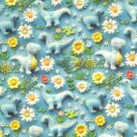 3D Dinosaur on Blue by Little Johnny - Cotton Fabric Half a Metre