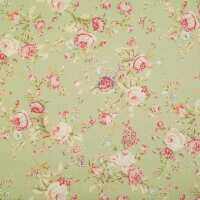 Rose & Hubble - Vintage Rose on Green - 100% Cotton Poplin Half a Metre