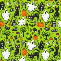 Ghosts and Cats - Lime Green - Halloween Polycotton Half a Metre