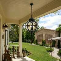 Waterproof Aluminum Glass Ball Outdoor Chandelier Light Hanging Chain Adjustable Black / 7''x9'' / Single
