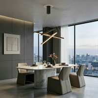 Minimalist Strip Stepless Dimming LED Black Modern Chandelier 3-Light / White / Single
