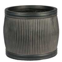 IDEALIST Lite Vertical Ribbed Vintage Style Faux Lead Dark Grey Barrel Garden Round Planter, Outdoor Plant Pot H36 L42 W42 cm, 50L