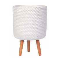 IDEALIST Lite Honeycomb Style White Cylinder Planter with Legs, Round Indoor Plant Pot Stand for Indoor Plants D31 H47 cm, 19.8L