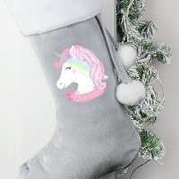 Personalised Christmas Unicorn Luxury Silver Grey Stocking