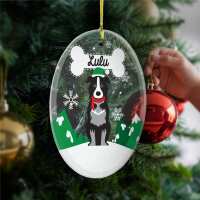 Personalized Christmas Dog Breeds Oval Glass Ornament