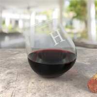 Engraved Initial Tipsy Wine Glass