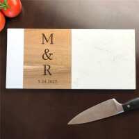 Engraved Couple's Initials Marble and Acacia Wood Serving Board