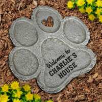 Engraved Welcome to Paw Print Stone