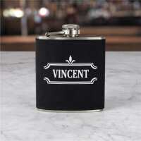 Engraved Ornate Border With Name Leatherette Flask