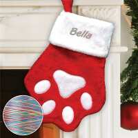 Embroidered Red Paw Christmas Stocking with Rainbow Thread