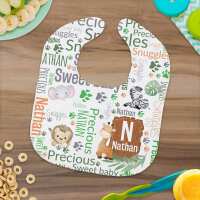 Personalized Safari Word Art Baby Bib