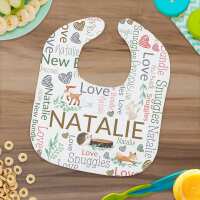 Personalized Woodland Word Art Baby Bib