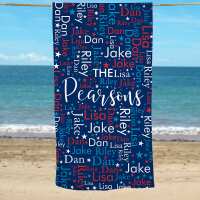 Personalized Red White and Blue Word Art Beach Towel