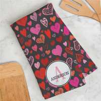 Personalized Multi-Colored Hearts Dish Towel