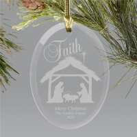 Engraved Nativity Oval Glass Christmas Ornament