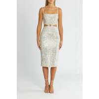 Cut Out Sequin Midi Dress - Silver