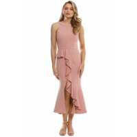 Crepe Asymmetric Ruffle Dress - Rose