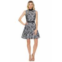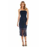 Geo Floral Lace Strapless Dress - Navy