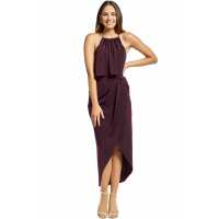 Frill High Neck Maxi Dress - Aubergine