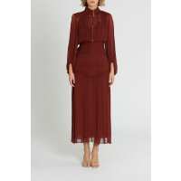 Safira Button Up Ruched Midi Dress - Sangria