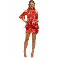 Folklore Print Lace Up Dress - Folklore Chintz Red