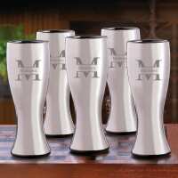 Set of 5 Groomsmen Gunmetal Pilsner Beer Glasses Stamped