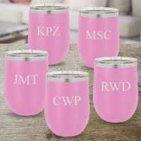 Set of 5 Personalized Wine Tumblers 12 oz. - Light Purple 3Initials