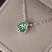 Cremation Ashes Floating Peardrop Necklace Green