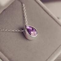 Cremation Ashes Floating Peardrop Necklace Purple