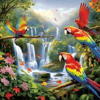 Meerdere Papegaaien Rond / 50x60cm