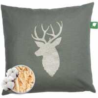 Zirbenkissen 30x30cm, Canvas Taupe, Hirschkopf Linie weiß