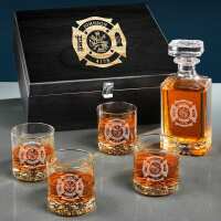 Firefighter Bourbon Decanter Set and Buckman Glasses Gift Set - Ebony Black Box