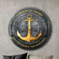 Anchor Aweigh Custom Round Wood Tavern Sign for Sailors, Lake House Decor X-Large