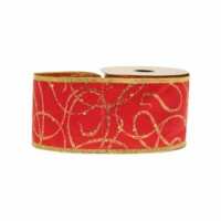 Satin Red With Gold Glitter Swirls 63mm