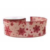 Natural with Red Glitter Snowflakes Ribbon (63mm x 10yds)