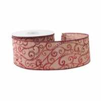 Natural with Red Glitter Swirls Ribbon (63mm x 10yds)