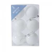 8cm White Shatterproof Baubles (x6)