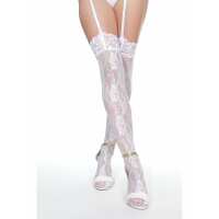 Coquette Lace Thigh High Stockings with Rhinestone Details WHITE / OS