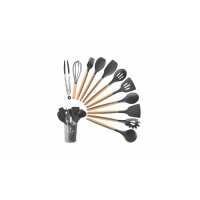 EcoChef 12 Piece Kitchen Utensil Set with Wooden Handle - Charcoal