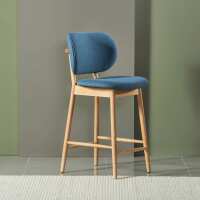 Olivia Bar Stool - Solid American Oak with Denim Blue Fabric
