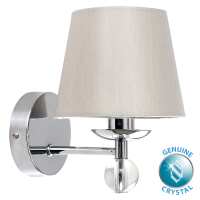 Contemporary Single Crystal Wall Light with Chrome Finish and Cream Shade-No bulb
