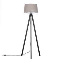 Barbro Dark Wood Tripod Floor Lamp with Grey Doretta Shade