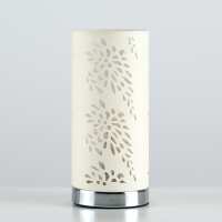 Brushed Chrome Touch Table Lamp With Cut Out Fabric Shade-Cream