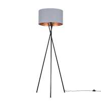 Camden Black Tripod Floor Lamp with XL Grey and Copper Reni Shade