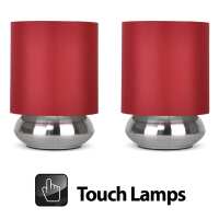 Pair of Modern Brushed Chrome Touch Table Lamps with Red Shades