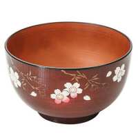 Miyamoto Plastic Wood Effect Donburi Rice Bowl, Mahogany Brown Sakura Cherry Blossom Pattern - 150 g
