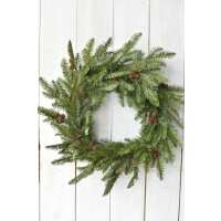 24" Faux Green Spruce Real Touch Wreath w/Faux Pinecones